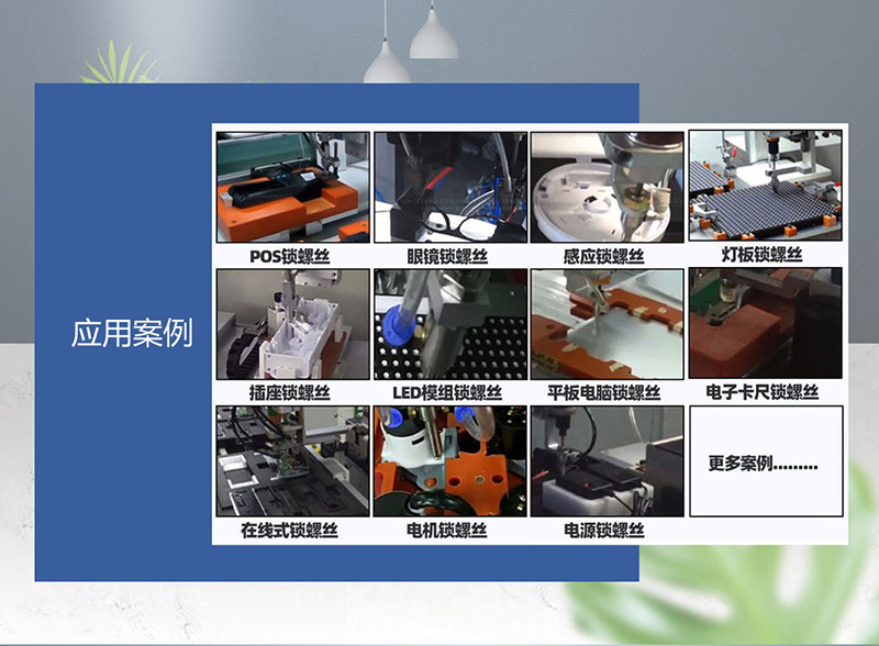 該鎖付系統可等同為全自動鎖螺絲流水線,通過四個工作站的作業,將百葉窗扇葉通過螺絲緊固在框架內的指定位置,螺絲采用自主研發吹氣式自動送釘機,直接輸送至鎖付機構;扇葉通過專用治具與框架定位,需手動放置;鎖付系統采用水平雙方向同時作業,配置4把電批位于兩側,一次擰好4顆螺絲;移動式作業臺根據程序設定,逐點向前推進并自動擰螺絲。